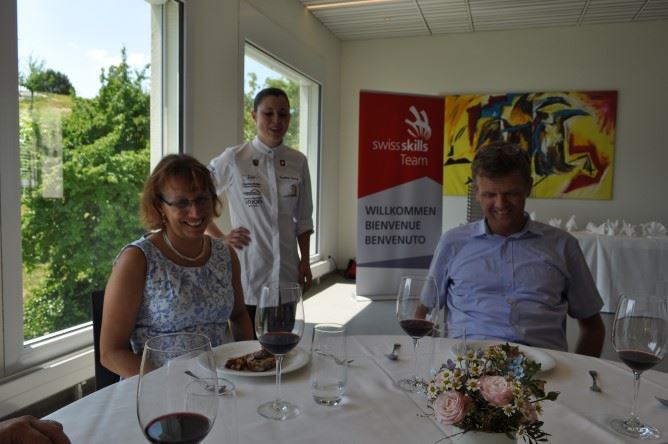 Im Rahmen der Vorbereitungen finden auch fünf praktische Trainingseinheiten statt. So kamen am vergangenen Dienstag in den Räumlichkeiten Hotel & Gastro Formation in Weggis geladenen Gäste in den Genuss einer ersten Probe. Unter scharfer Beobachtung ihrer Coaches bereitete Evelyne Tanner ein 4-Gang-Menu für sechs Personen zu, das Tatjana Caviezel anlässlich eines Banketts servierte. (htr/npa)