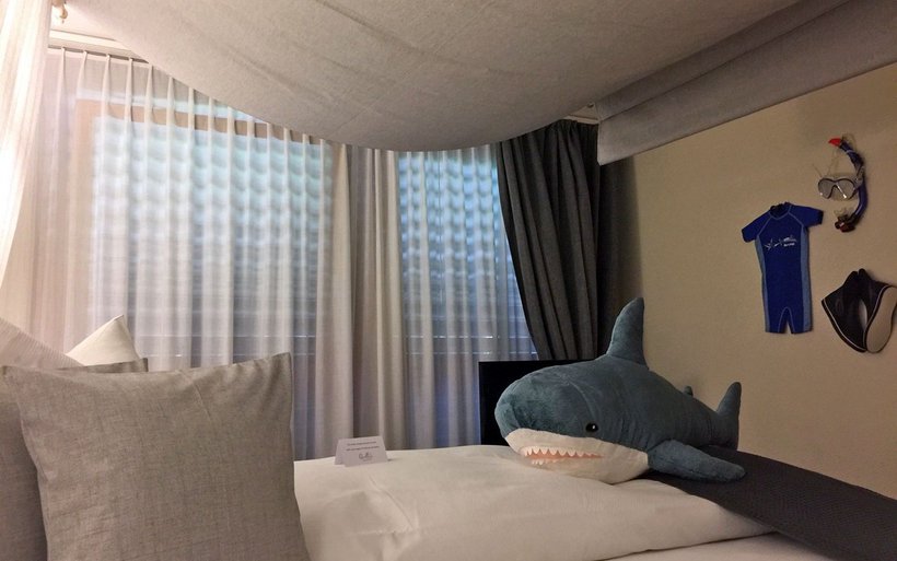 «Dass unser Hotel eine Geschichte erzählen muss, die in engem Zusammenhang mit der Zahl Vier steht, war für uns von Anfang an klar», schildert Natalie Blaser. Aus diesem Grund haben sie sich für das Kunstwort «Quattier» entschieden. Es steht für die vier Sprachregionen der Schweiz und im tieferen Sinne sogar noch für mehr. Wird die Zahl Vier in die entsprechenden Landessprachen übersetzt und jeweils ein Wortteil daraus entnommen und wieder zusammengesetzt entsteht daraus das «Quattier».