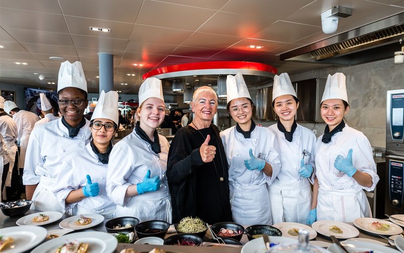 Die Einweihung wurde von zwei Schweizer Starköchen begleitet, Irma Dütsch, der ersten, mit einem Michelin-Stern ausgezeichneten Schweizerin, und Anton Mosimann, Officer of the Order of the British Empire (OBE), die - mit aktiver Unterstützung von Studierenden der Culinary Arts Academy - dem Besuch der neuen Küchen beiwohnten.
