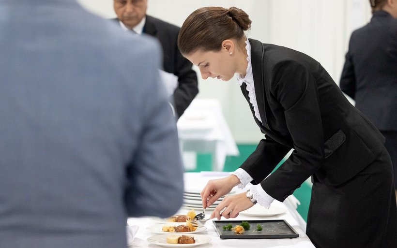 Ich liebe es, vor Gästen zu flambieren, die Speisen am Tisch zuzubereiten und zu schöpfen. Deshalb haben mir der Bankettservice und das Fine Dining am besten gefallen. Ich konnte einen Sechsgänger vor den Gästen fertig zubereiten und aus Platten schöpfen.