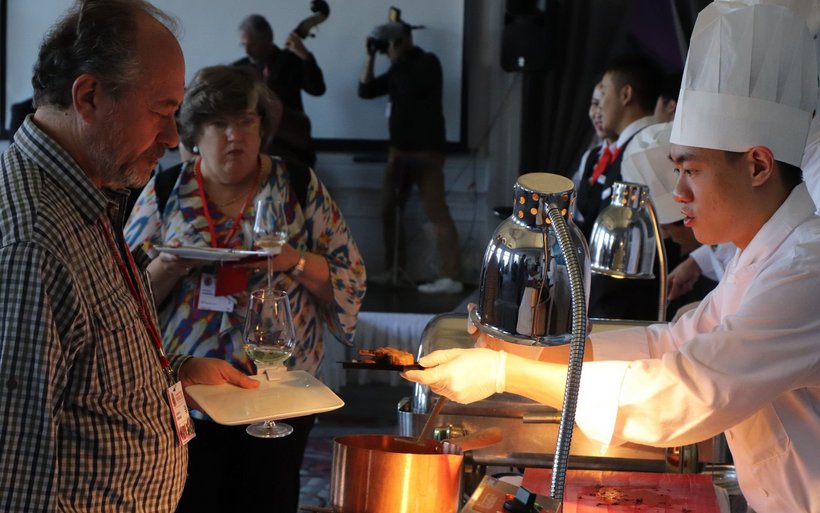 Repas d’ouverture du Concours mondial de Bruxelles, mercredi soir, à Leysin. Une table haute, un panorama alpin à couper le souffle, des élèves de la Swiss Hotel Management School préparant avec ravissement ici une choucroute, là une glace au pop-corn. Autour de ce buffet volant: un américain vivant à Hong Kong, un Italien, un Géorgien. Un peu comme dans une blague de cour d’école. Chacun raconte son rapport au vin, les querelles sur l’origine du breuvage, les dimensions techniques, les anecdotes. Un Pinot Noir «Les Calames» de la famille Porret, à Cortaillod (NE) séduit la tablée par sa fraîcheur, son immédiateté fruitée. Ils rigolent de l’exotisme rare du vin suisse. Les mots Petite Arvine, Chasselas frémissent dans les conversations, certains semblent plus attiré par la technique, les chauffes, la tonnellerie, les degrés d’alcool, comme cette journaliste américaine qui dit pouvoir en parler toute la nuit. D’autres s’arrêtent sur la salinité, le punch, la longueur en bouche. Le «Secret de la chapelle» Pinot Noir de Cormondrèche (NE) ne pouvait pas mieux porter son nom que ce soir-là. L’autre inattendue vedette de la soirée Charlie Chaplin: plusieurs dégustateurs se sont arrêtés au Chaplin’s World l’après-midi même. Ils semblent envoûtés par le cinéaste qu’ils redécouvrent. Une étudiante grimée en Charlot fait son apparition, sa présence androgyne en jette, elle fait virevolter sa canne. La petite tribu se disloque un peu. Certaines timidités se fissurent dans la nuit. Le lendemain, retrouvailles auprès d’un train à crémaillère, il faut redescendre, à Aigle. Un monsieur raconte ses stages hôteliers à Leysin, voilà 20 ans. Un dégustateur italien parle de levure, de pain et discerne quelques biches apeurées dans le bois.