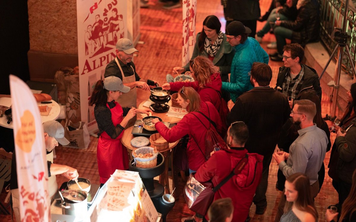 Le festival permet aux jeunes urbains de redécouvrir la fondue de façon ludique comme ces étudiants du collège Saint-Michel qui effectuent un reportage de terrain en riant. Ils écoutent attentivement un chef, qui raconte que quand tu rêves de manger autre chose avant un match de Gottéron, tu t’entends commander une fondue. Le dragon rôde autour du caquelon.