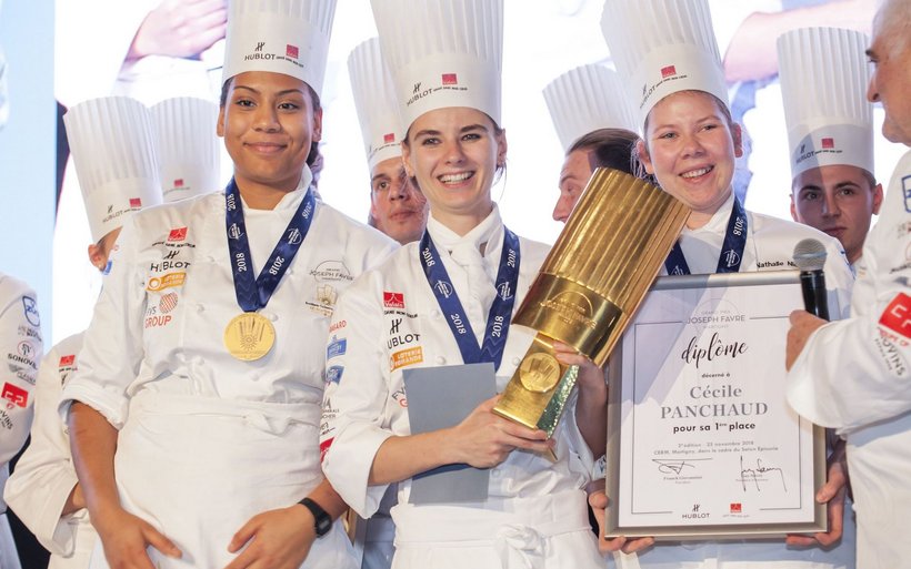 La seconde édition du Grand Prix Joseph Favre s’est achevée dimanche 25 novembre 2018 sur la victoire de Cécile Panchaud, 26 ans, cheffe de partie à l’Hôtel des Trois Couronnes de Vevey et de sa brigade féminine. De l’avis unanime du jury de dégustation, uniquement masculin, Cécile Panchaud a su mettre en valeur les produits du terroir imposés avec sa «terrine de truite safranée et sa foccacia aux petits légumes croquant», une «selle de chevreuil habillée en croûte, épaule confite avec ses garnitures choux et des sous-bois, pomme de terre infusée au lard et sauce à la Syrah valaisanne» sans oublier son «jardin automnal autour de la pomme et de la châtaigne». Meilleure commis en 2016 à Martigny aux côtés de Jérôme Lucienne, celle qui confiait cet automne participer au Grand Prix Joseph Favre pour se surpasser mais aussi pour ne pas rester sur une mauvaise note (sa troisième place à la sélection suisse du Prix Culinaire Taittinger) a ainsi parfaitement relevé le défi qu’elle s’était imposé.