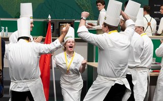 Tout au bout de l'estrade en bas, en compétition le même jour que la Suisse, un box de cuisine attire toutes les attentions, aimante les observateurs. Celui de l'équipe du Danemark, détentrice du Bocuse d'Or 2019. Suivie par une cohorte de médias nationaux et un photographe attentif aux moindres