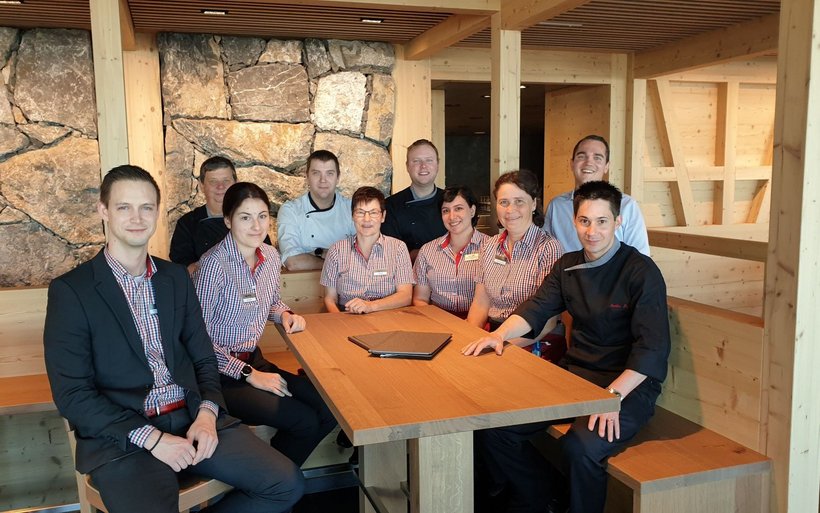 Das heimelige Restaurant ist mit viel Altholz und Fels ausstaffiert und in den gemütlichen Sitznischen stehen Tische, Bänke und Stühle aus massivem Holz. Durch die grossen Fenster schweift der Blick über die Churfirsten bis nach Italien und über die ganze Schweizer Alpenkette. (htr/pt)