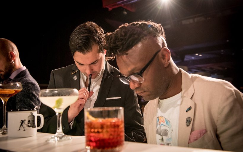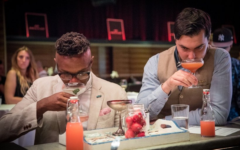 In mehreren Challenges traten die 10 besten Bartender der Schweiz gestern im Kaufleuten Club gegeneinander an, die in fünf Runden aufgeteilt waren. Allen Drink-Kreationen wurden keine Grenzen gesetzt und die Bartender hatten jeweils zehn Minuten Zeit für Vorbereitung und Präsentation. Die «Signature Serve»-Runde stellte die Konkurrenten vor die Herausforderung, einen modernen Drink-Klassiker zu kreieren – inspiriert von ihrer Persönlichkeit und der Bar, in der sie arbeiten. Die zweite Challenge trug den Titel „Wanderlust“: Die Kandidaten sollten mit zwei Drinks auf ihre Kultur- und Trinkerfahrungen von Reisen im In- und Ausland erzählen. So wurden die Juroren über die Cocktails in Regionen der Schweiz und in ferne Länder entführt.«Celebration of local, seasonal ingredients» war das Motto der «Signature Serve»-Runde: Die Bartender mussten sich für eine Zutat aus einer vorgegebenen Liste entscheiden und damit fünf klassische Cocktails mit einer charakteristischen Konsistenz entwickeln.
