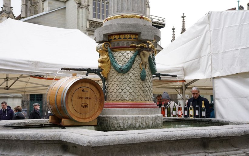 Der Anlass findet seit 2016 zum vierten Mal statt. Doch erstmals floss bereits im Jahr 1848 in Bern Wein aus einem Brunnen. Damals ging es auf dem politischen Parkett um die Frage, ob Bern oder Zürich Bundeshauptstadt werden sollte.
