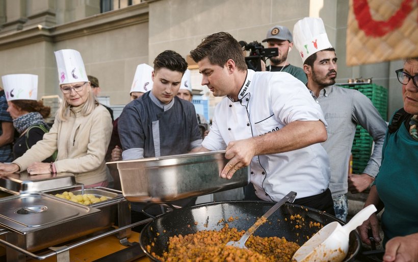 Die SV Stiftung unterstützte finanziell dieses Jahr bereits die Durchführung eines von über 30 Organisationen mitgetragenen Foodsave-Banketts auf dem Bahnhofplatz in Bern, an dem 2000 Passantinnen und Passanten unter freiem Himmel von rund 200 freiwilligen Helferinnen und Helfern gratis bekocht und bewirtet wurden.