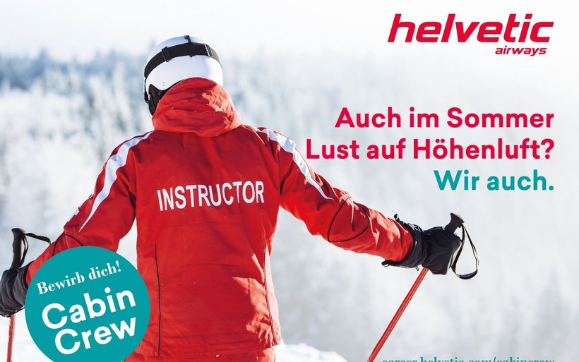 Die Schweizer Regionalairline Helvetic Airways bietet mit dem neuen «Ski & Fly»-Programm Skilehrerinnen- und lehrern sowie Saisonangestellten in den Sommermonaten ein attraktives Arbeitsmodell als Flight Attendant.