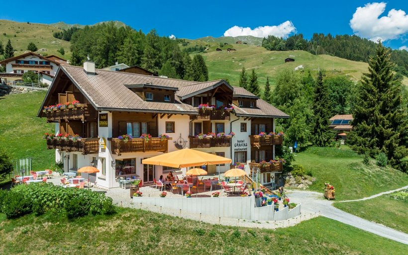 Auf 1'250 Höhenmetern, umgeben von der imposanten Bündner Bergwelt, warten auf die zwei- und vierbeinigen Gäst nicht nur wunderschöne Wanderwege, sondern auch eine grosse, eingezäunte Hundespielwiese, spezielle Hundekurswochen und komfortable Zimmer mit Fress- und Trinknäpfen sowie faltbaren Hundeboxen auf ruhesuchende Hundehalter.[IMG 2]