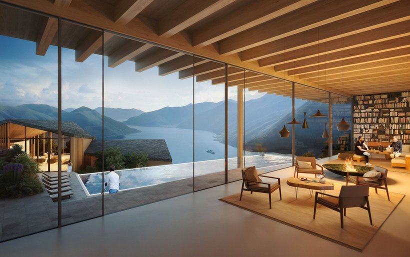 In den Entwürfen für das Resort sieht man viele kleine Häuser, die unterhalb des neuen Hotels wie Würfel am Hang kleben. Patrice Gruner, CEO und Gründer des Basler Architekturbüros Gruner & Friends, das für den Entwurf verantwortlich zeichnet, erklärte: «Wir wollen eine Ganzjahresdestination schaffen, die sich wie ein authentisches Tessiner Bergdorf in die Landschaft integriert und nebst den Hotelgästen auch externen Besuchern offensteht. Das Design nimmt die Sprache der lokalen Architektur in Material und Form auf.» Tatsächlich hat man sich von den Rustici im Bavonatal inspirieren lassen; dabei wird neben Granit auch auf Holz und Glas gesetzt. Das Resort soll nachhaltig und ressourcenschonend gebaut werden.