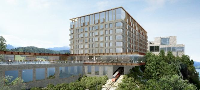 Insgesamt wird das Resort auf dem Bürgenstock drei Hotels mit 400 Zimmern und800 Betten haben. Dazu kommen Suiten und zwölf Restaurants. Zur neuen Ferienanlage mit Spa und Sportanlagen sollen im Endausbau 30 Gebäude gehören. Das Resort wird sich über eine Länge von einem Kilometer erstrecken.