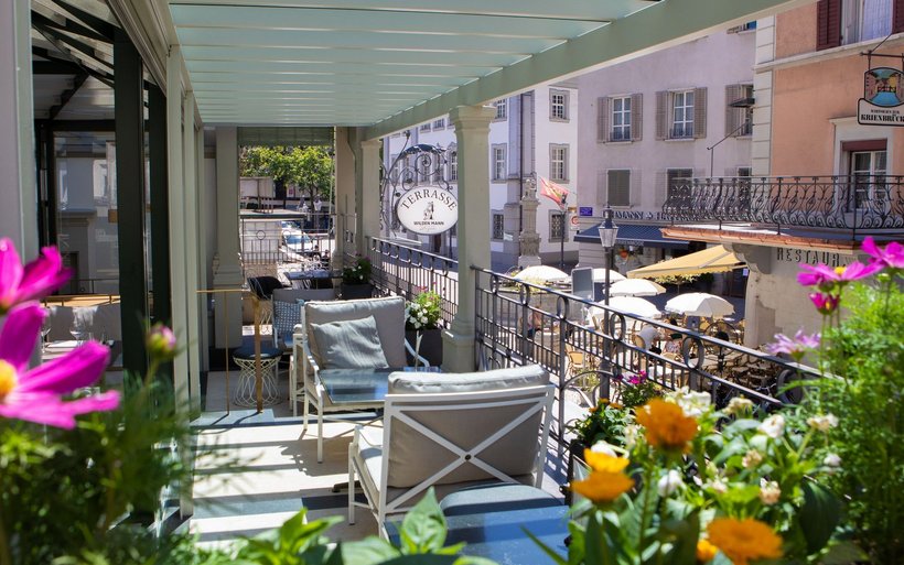 Die Planung der neuen Terrasse im Stadtluzerner Hotel Wilden Mann begann bereits 2015. Hoteldirektor Arno Affolter und sein Team des 4-Sterne-Hotels arbeiteten mit dem Architekturbüro Deon aus der benachbarten Pfistergasse und mit der Denkmalpflege zusammen. Der «Wilde Mann» befindet sich in der Schutzzone A. «Die Zusammenarbeit war sehr gut, mehrere Varianten wurden entworfen, geprüft, wieder angepasst», so Arno Affolter. Im Sommer 2018 traf schliesslich die Baubewilligung ein. Somit konnte der Umbau erfolgen. Die neue Terrasse wurde von März bis Juni 2019 realisiert.