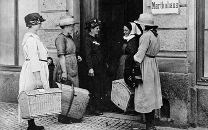 Erst im Zuge der Industrialisierung wurde es üblich, dass alleinstehende Frauen überhaupt ihr Heim verliessen. Damals zogen junge Frauen auf der Suche nach Arbeit vom Land in die Städte. In vielen urbanen Zentren entstanden in der Folge Frauenunterkünfte – teils aus Sorge um die Moral der jungen Damen, teils um diese zu schützen. In solchen Pensionen lebten die Arbeiterinnen oft unter gestrenger Aufsicht einer «Hausmutter».