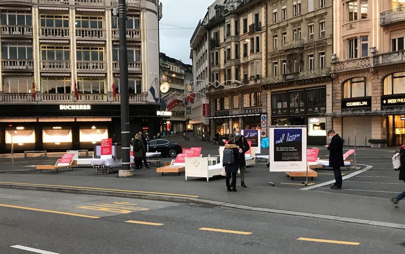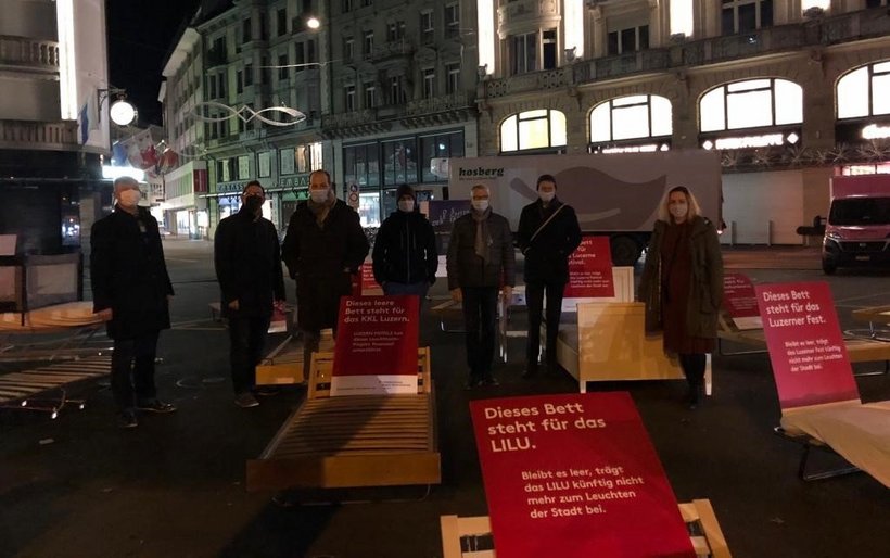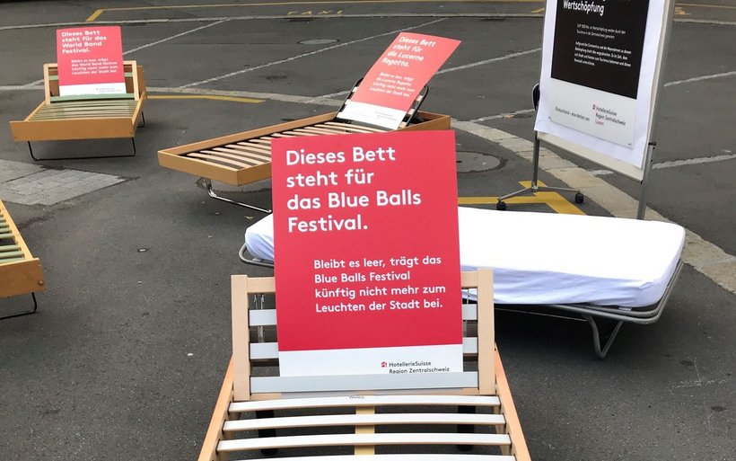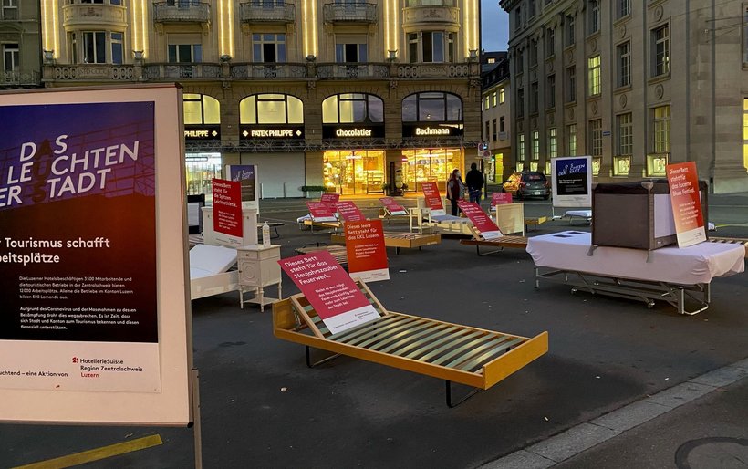 Um diesem Fakt symbolisch Ausdruck zu verleihen, hat HotellerieSuisse Luzern auf dem Schwanenplatz leere Hotelbetten als Mahnmal für abgesagte Veranstaltungen platziert. Damit soll die Bevölkerung an das Engagement der Hoteliers zugunsten der Vielfalt der Stadt aufmerksam gemacht werden.