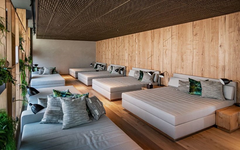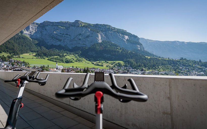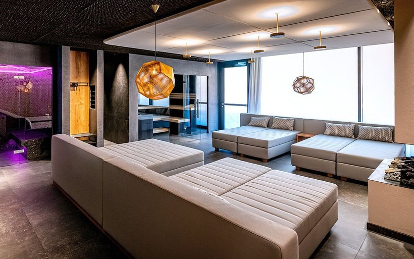 Ein Höhepunkt des Spa ist die Panorama-Sauna im finnischen Stil mit raumhohen Fenstern, die einen freien Blick auf die Bündner Bergwelt bieten. Nach dem Schwitzen bietet sich das Sonnendeck an: in übergrossen Schaukel- und Liegestühlen lässt sich eine belebende Dosis Vitamin D tanken und reine Alpenluft schnuppern.
