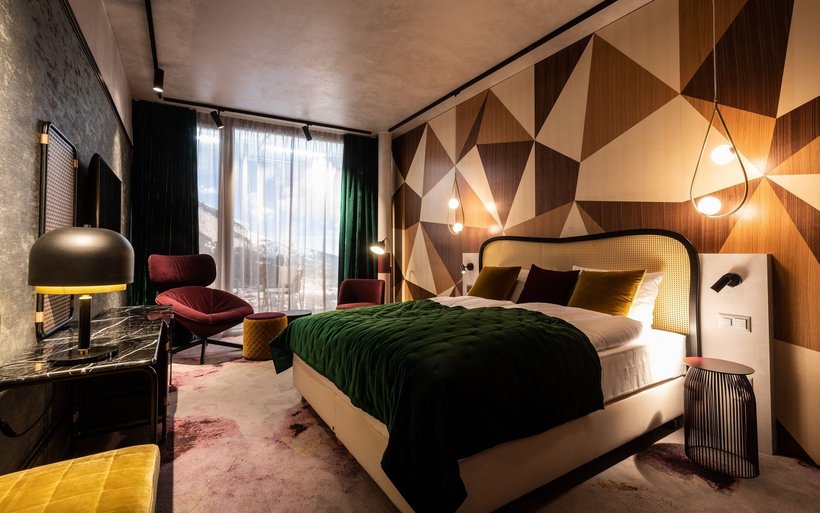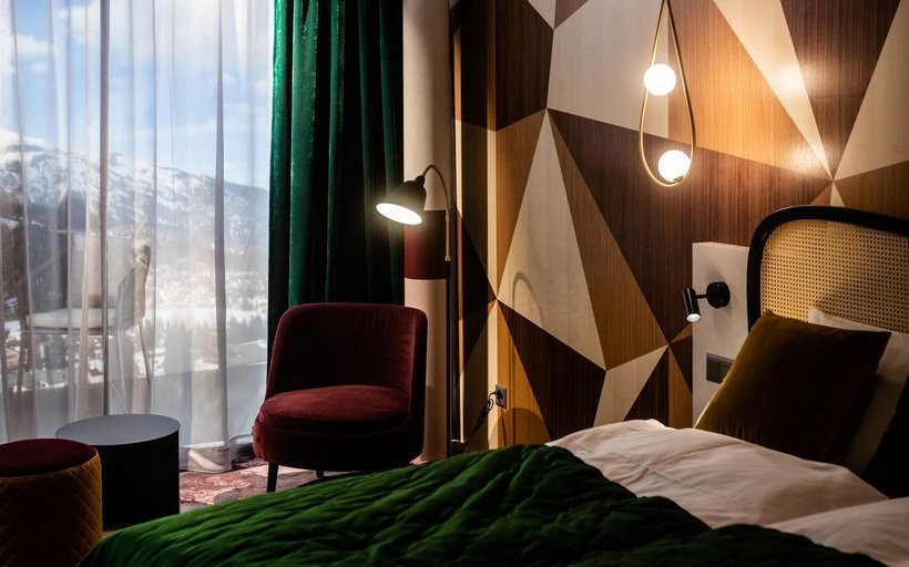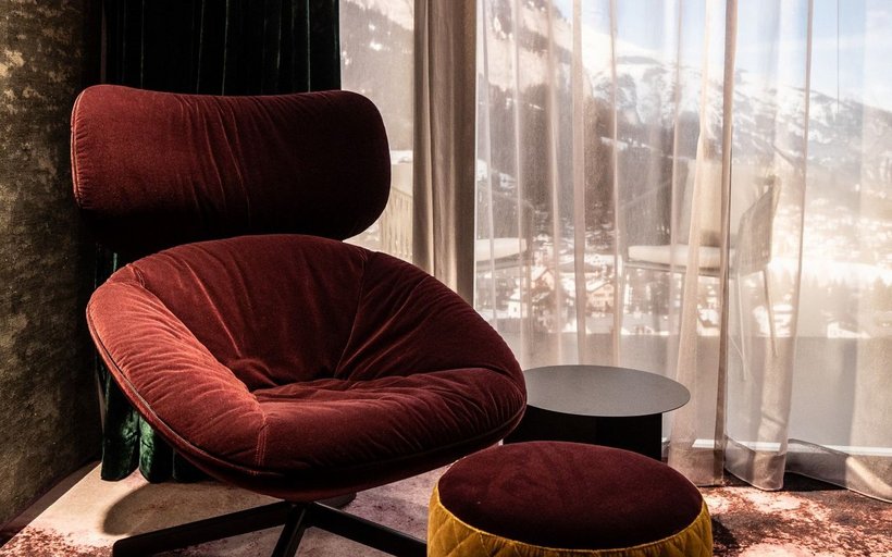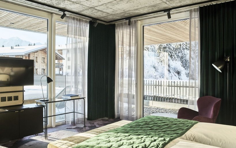 Jedes Zimmer verfügt über eine private Terrasse, von der aus man direkt ins weite Tal und die umliegenden Berge blickt. Die öffentlichen Räume seien eine gelungene Kombination aus Gemütlichkeit und Raffinesse. Unbearbeitete Decken mit freiliegenden Rohren, Metrofliesen und markante Säulen treffen auf gewagte Tiefflorteppiche, üppige Vorhänge und intime Ecken, die zum Verweilen und Zuschauen einladen. Die hohe, doppelstöckige Eingangshalle – mit einem Wandgemälde des Künstlerduos Bane&Pest, reich gefüllten Regalen und einem scheinbar schwebenden Kamin – sei ein Ruhepol par excellence.