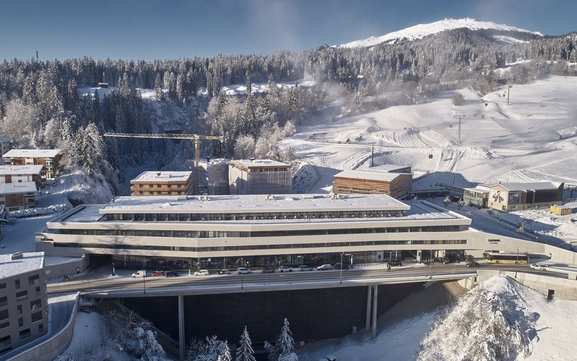 Der vierstöckige Stenna Komplex, von Baumschlager Eberle entworfen, stelle mit seiner eleganten, modernen Form eine Bereicherung für die lokalen architektonischen Normen des Schweizer Dorfs dar, schreibt die Vereinigung Design Hotels in einer entsprechenden Mitteilung. Gleichzeitig würdige es seine Umgebung, denn die längliche, erhöhte Struktur füge sich scheinbar mühelos in die Umgebung ein und imitiere gleichzeitig die felsige Natur der Bergregion.