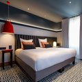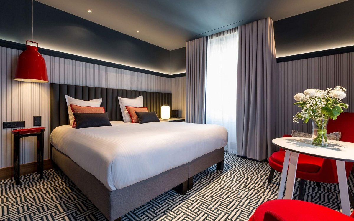 Pour l’Hôtel D à Genève, l’architecte a conçu les chambres dans un style contemporain. Elle s’inspire de symboles helvétiques forts tels que les fameux papiers découpés ou les camaïeux de vert et jaune des tableaux de Ferdinand Hodler.