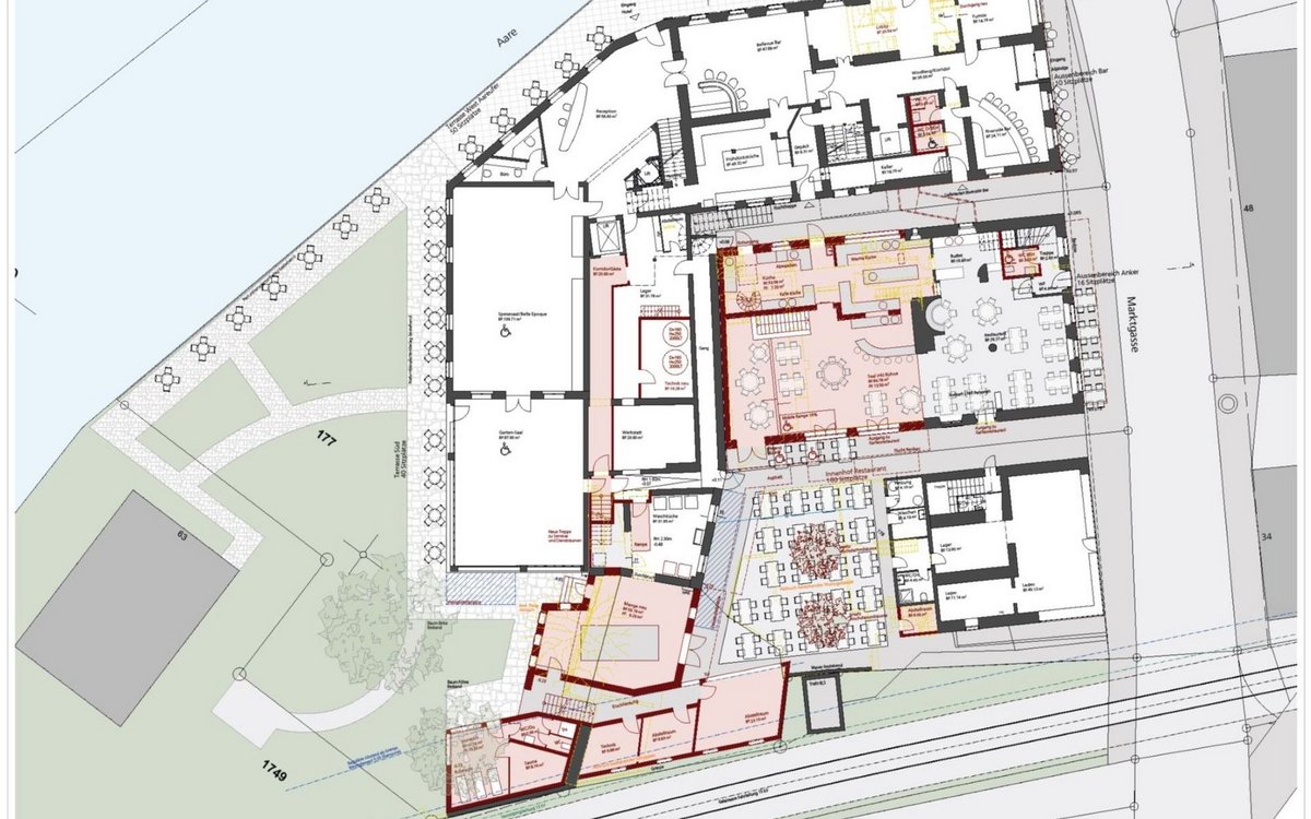 Die alte Küche, die sich im hinteren Teil des Restaurants befand, wird neu seitlich in die Restaurantfläche integriert werden. Die Kühlräume sowie Toilettenanlagen werden sich in Zukunft im neuen Keller befinden. Die Restaurantfläche wird dadurch vergrössert und im hinteren Teil des Restaurants bietet eine Bühne Raum für Anlässe, Konzerte, Seminare oder zusätzliche Restaurantfläche. Der Abbruch des hinteren Teils der benachbarten Liegenschaft «Müllerhaus» trägt zudem dazu bei, dass der früher eher düstere hintere Teil des Restaurants tagsüber lichtdurchflutet wird.