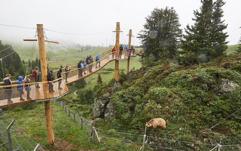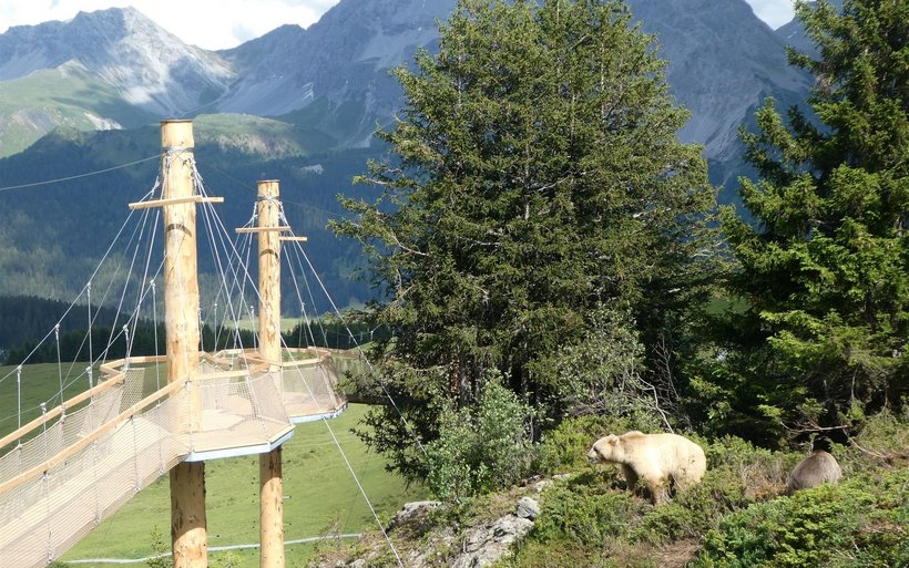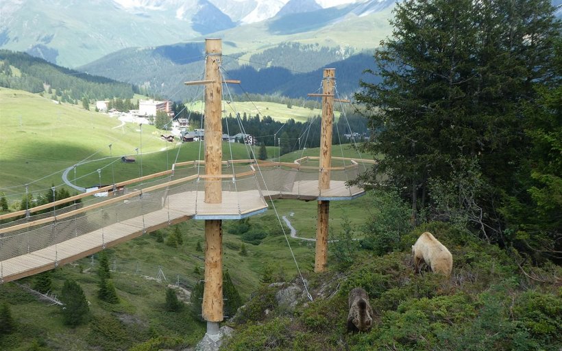 Der letztjährige Gewinner des Milestone-Tourismuspreises, das Arosa Bärenland, ist seit Freitagvormittag um eine Attraktion reicher: Der neue «schwebende» Abenteuerweg über das Gelände des Bärenparks wurde eröffnet. Das neue Highlight vom Bärenschutzzentrum besteht aus acht Aussichtsplattformen, die über Hängebrücken miteinander verbunden sind.