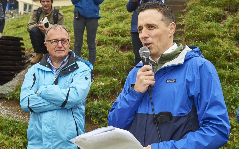 Nach der Eröffnungsrede von Pascal Jenny, Tourismusdirektor von Arosa und Präsidenten der Stiftung Arosa Bären, informierten Spezialisten und Partner, darunter Roberto Di Valentino von Erlebnisplan, Rochus Caluori vom Arosa Bärenland und Jan Diener von der Gemeinde Arosa, die Gäste über den Bauverlauf des Hochpfades.