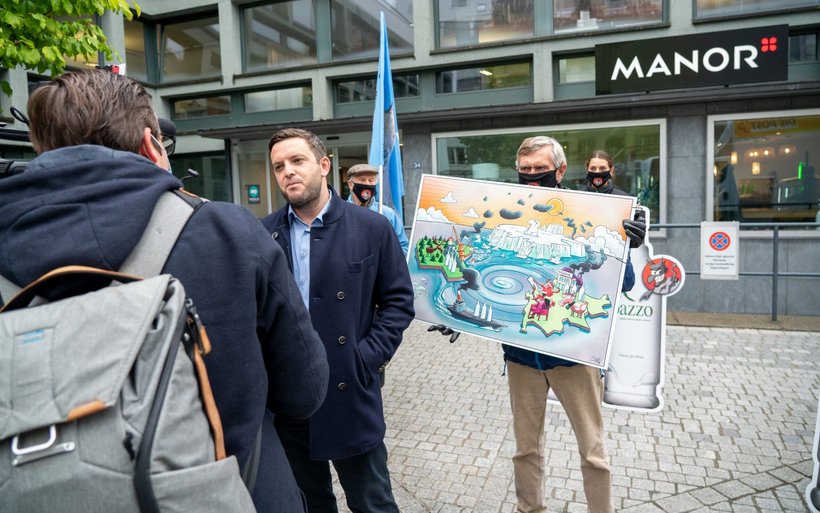 Das Wasser aus geschmolzenem Gletschereis aus Grönland müsse über eine Strecke von 9600 Kilometern transportiert werden, um in die Regale von Manor zu gelangen. Dabei werde mehr CO2 als das Eigengewicht des Produkts ausgestossen, teilten die Verantwortlichen der Kampagne mit. Zudem wirke die Herstellung des Mineralwassers in Anbetracht der schmelzenden Polarkappen «besonders zynisch».