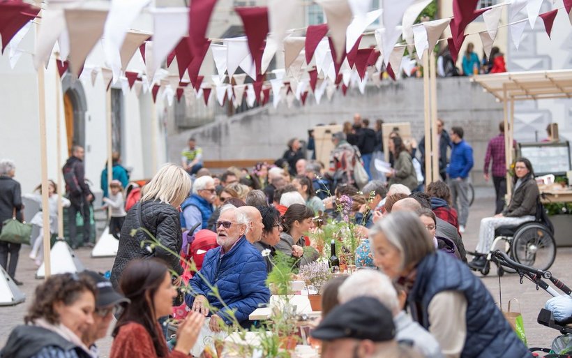 Der mit Produzentinnen und Produzenten des Churer Wochenmarkts sowie lokalen Gastronomen realisierte «Lange Tisch» zelebrierte das Bündner Frühlingsgemüse und zeigte gleichzeitig den Reichtum und die Qualität der regionalen Produkte auf.