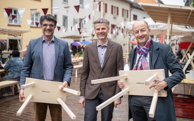 An der Veranstaltung nahmen auch der Bündner Regierungsrat Marcus Caduff sowie der Churer Stadtpräsident Urs Marti teil. Die beiden Magistraten weihten bei dieser Gelegenheit den offiziellen «graubündenVIVA-Tisch» mit einem symbolischen Akt ein und nahmen gemeinsam mit graubündenVIVA-Gesamtprojektleiter Philipp Bühler an einer Diskussionsrunde zum Thema Genuss, Kulinarik und Regionalität teil.