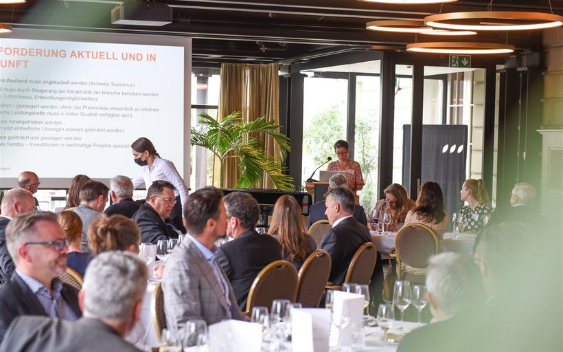 Weiter sprach Janine Bunte, Präsidentin Parahotellerie und CEO der Schweizer Jugendherbergen. Als Einstieg gab es für einmal Gutes zu berichten – die Nachfrage nach Ferienwohnungen, Resorts und Campingplätzen boomt. Doch dann war es auch schon vorbei mit «good news» – denn weniger rosig sieht es bei den Jugendherbergen aus: Es fehlen Gäste; vor allem auch in Destinationen, die sich auf den internationalen Markt fokussiert haben wie Zermatt, Davos, Interlaken.