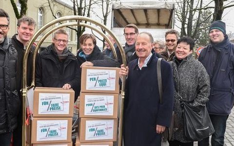 Diesen missbräuchlichen Schweiz-Zuschlägen wollen die Initianten einen Riegel schieben. Weil Massnahmen dagegen im Parlament wiederholt gescheitert sind, setzen sie auf das Instrument der Volksinitiative. Am Dienstag haben sie das Begehren mit 107'908 beglaubigten Unterschriften eingereicht.