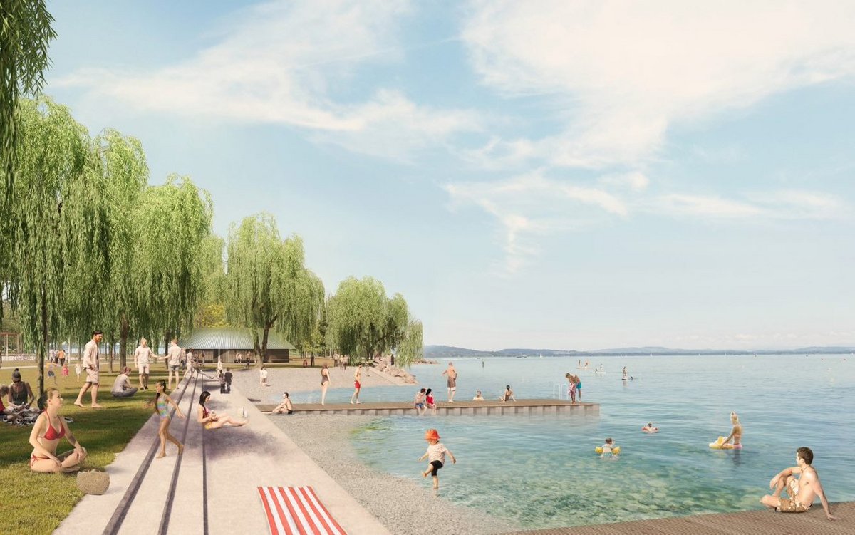 Un grand projet qui, comme pour son voisin genevois, sert déjà de vitrine pour mettre en valeur les attraits de Neuchâtel, images de synthèse, vues aériennes et photographies servant sa communication. Avec pour horizon, «une grande plage urbaine d’environ 150 mètres engazonnée et ombragée par les arbres préservés, un accès à l’eau facilité et un véritable espace de rives propice à de multiples activités». Cette nouvelle plage sera deux fois plus longue qu’actuellement. Elle devrait être terminée pour l'été 2024.