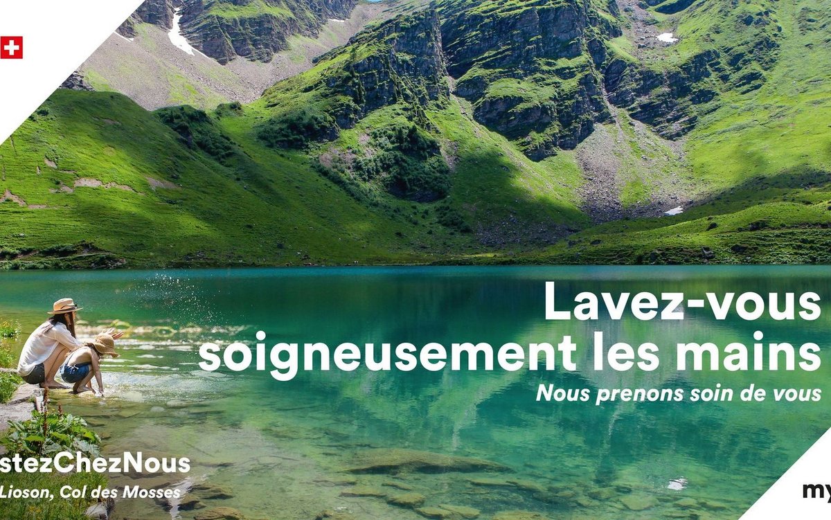 Il est ainsi possible de «garder les distances de sécurité» tout en admirant un panorama depuis le Peak Walk de Glacier 3000 aux Diablerets ou en sillonnant Lavaux à vélo. «Se laver soigneusement les mains» en barbotant dans les eaux des nombreux lacs du canton. «Eviter les poignées de main» pour mieux partager un verre de chasselas dans le vignoble, tout aussi chaleureux et convivial. Chacune de ces situations est signée par le slogan «Nous prenons soin de vous» et le hashtag «#RestezChezNous», lesquels prennent le contre-pied des messages «Prenez soin de vous» et «Restez chez vous» largement diffusés durant le confinement. Qu’il s’agisse d’annonces dans la presse ou de promotion digitale, les différents supports véhiculent un même message: «Le canton de Vaud se réjouit d’accueillir ses hôtes en toute sécurité pour réaliser tout un éventail d’activités uniques. En effet, les précautions indispensables en cette période de déconfinement progressif ne sont pas incompatibles avec des vacances dépaysantes à proximité, bien au contraire», explique l’OTV dans un communiqué.