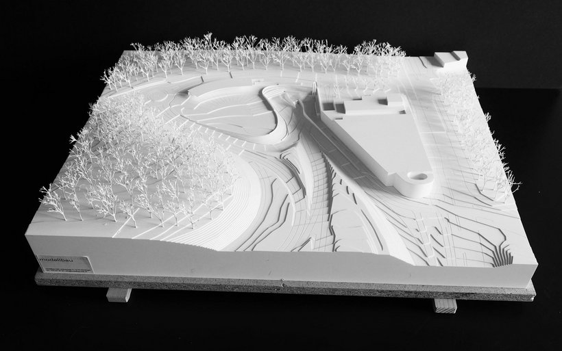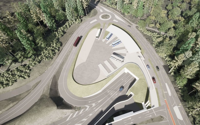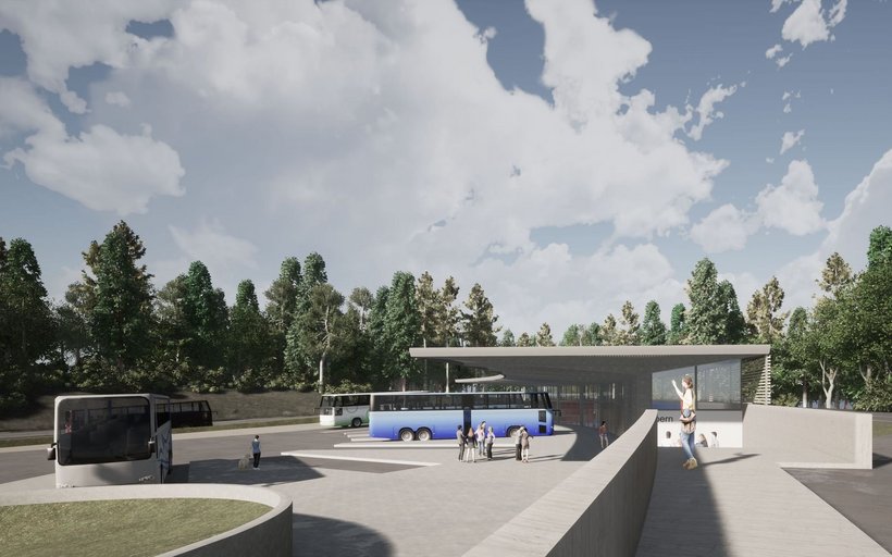 Auf der Basis einer Variantenstudie hat sich der Gemeinderat für den Ausbau des Standorts Neufeld entschieden. In einem Werkstattverfahren entstand eine Vorstudie. Die favorisierte Variante sieht parallel zur Studerstrasse ein Terminalgebäude mit einem auskragenden Dach vor, das Teile der Haltebuchten überdeckt.