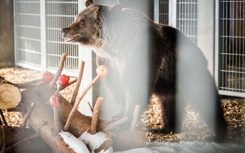 Entsprechend erfreut waren die Transportbegleiter, dass Jambolina die Äpfel zu mögen schien. Es sollte das letzte Mal sein, dass die Braunbärin ihre Mahlzeiten hinter Gitterstäben zu sich nehmen muss. Die Strecke, die der Fahrer ohne weitere Komplikationen von der Ukraine nach Polen durch Deutschland über Österreich in die Schweiz hinter sich legte, endete am heutigen Freitag im tief verschneiten Arosa.[RELATED]