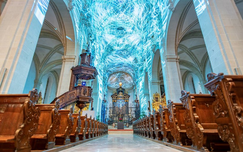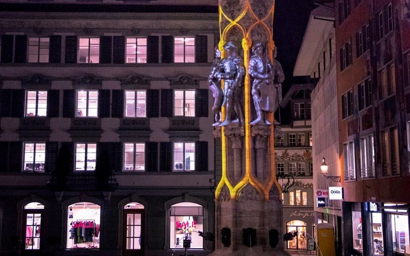 Der künstlerische Aspekt habe Vorrang vor grossflächigen Beleuchtungen. Und so springt denn etwa ein leuchtender Fisch aus dem dunklen Teich vor dem Löwendenkmal und verwandelt sich oder leuchtet das Wasser vor dem Rathausquai blau aus. Sogar in heilige Hallen erhielten die Lichtkünstler Einlass: Das Kollektiv Projektil präsentiert mit Genesis seine neueste Show in der Hofkirche.