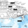 Zwei Bühnen (Les Jardins und Grand Hall) werden kostenlos zugänglich sein. Sie sind Schauplatz von Jam Sessions, Konzerten im Rahmen der Montreux Jazz Talent Award, DJ-Sets sowie Workshops. Die sogenannte Scène du Lac ist den grossen Acts gewidmet und kann tagsüber gratis begangen werden. Die Petit-Théâtre-Bühne, die Raum für 300 Sitzplätze bietet, steht im Zeichen des Jazz und Soul.