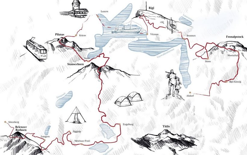 Der neue Fernwanderweg führt durch die Erlebnisregion Luzern-Vierwaldstättersee mit den fünf Kantonen Luzern, Schwyz, Uri, Nidwalden und Obwalden und macht den einmaligen Mix erlebbar, der die Ferienregion ausmacht: Die charmante Stadt Luzern mit ihren weltbekannten Highlights, historische Dörfer, der Vierwaldstättersee und glitzernde Bergseen sowie fantastische Bergerlebnisse. Im Zentrum des Wandergenusses stehen die «Big 6» der Zentralschweizer Berge: Stoos, Rigi, Pilatus, Stanserhorn, Titlis und Brienzer Rothorn.