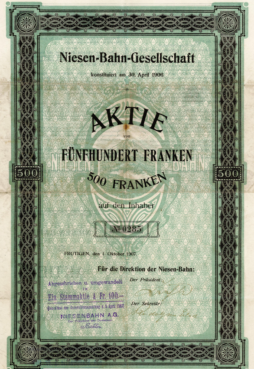 In den nächsten Wochen werden die Aktionärinnen und Aktionäre der Niesenbahn AG über das Umtauschprozedere informiert. Die bisherigen historischen Aktien werden entwertet und in Buchwerte umgetauscht.[IMG 3]
