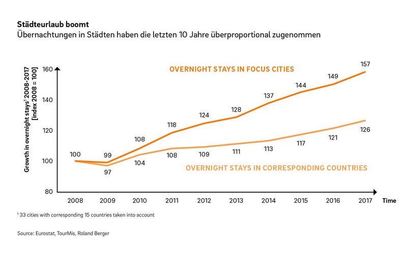 Die Hintergründe legt Vladimir Preveden, Managing Partner bei Roland Berger Österreich und Co-Autor der neuen europaweiten Studie «European city tourism study 2018: Protecting your city from overtourism», offen: «Das geschieht ja nicht von heute auf morgen und es wirken immer mehrere Faktoren zusammen», verweist er auf Ausnahmesituationen wie in Amsterdam oder Lissabon. Einer davon ist laut Studie der anhaltende Trend zum Städteurlaub: Stiegen die Nächtigungen in den untersuchten Ländern in den vergangenen zehn Jahren um 26 Prozent, nahmen sie in Städten mehr als doppelt so schnell zu. Eine Entwicklung, die zusätzlich durch die Sharing Economy forciert wird.