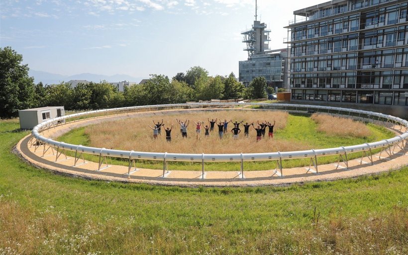 Die Infrastruktur auf dem Campus in Ecublens hat die Form eines gegossenen Aluminiumrings mit einem Durchmesser von 40 Metern und einer Länge von 120 Metern. Der Ring ist vollgepackt mit Sensoren – ein Novum in Europa. Die Anlage wurde vom DESL entwickelt und wird die Simulation einer unendlichen Hyperloop-Strecke ermöglichen. Im Vakuum wird die Leistung der Antriebs-, Schwebe- und Kinematiksysteme im Massstab 1:6 getestet.