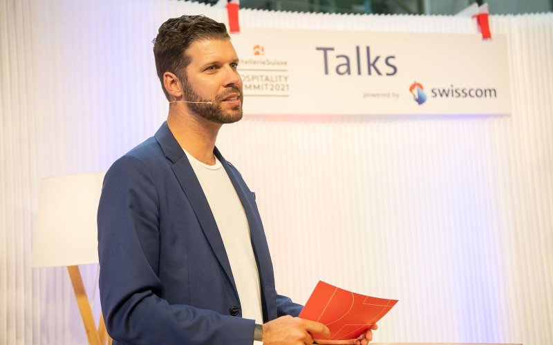 Patric Schönberg, Leiter Kommunikation, HotellerieSuisse interviewte in den Talks powered by Swisscom während den beiden Tagen sieben Persönlichkeiten. Patric Schönberg, Leiter Kommunikation, HotellerieSuisse interviewte in den Talks powered by Swisscom während den beiden Tagen sieben Persönlichkeiten. Bild: Corinne Glanzmann/Nadia Schärli/Philipp Schmidli
