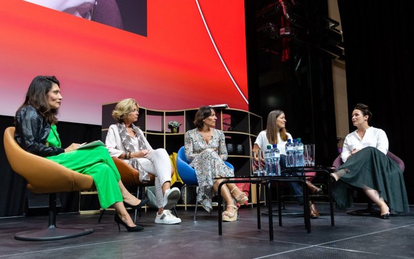 Marianne Temerowski, Co-Lead Diversity, Swisscom im Dialog mit Yaël Meier, Jungunternehmerin und Stimme der Generation Z (r.). Marianne Temerowski, Co-Lead Diversity, Swisscom im Dialog mit Yaël Meier, Jungunternehmerin und Stimme der Generation Z (r.). Bild: Corinne Glanzmann/Nadia Schärli/Philipp Schmidli