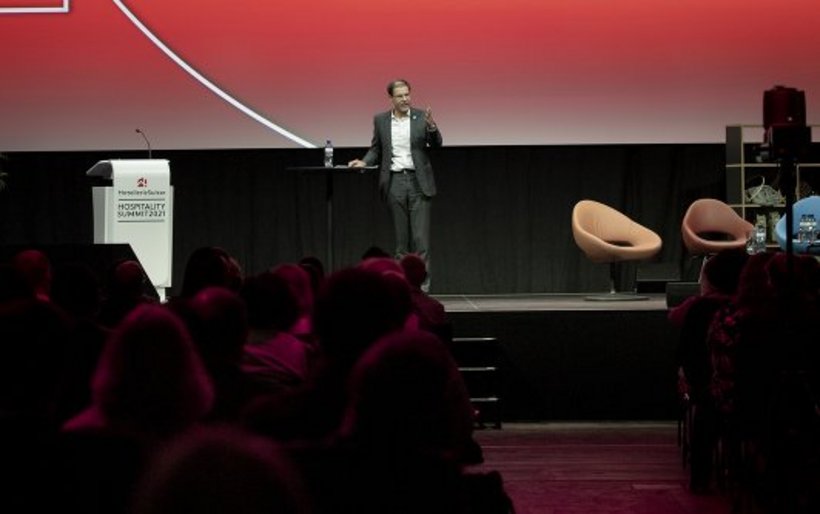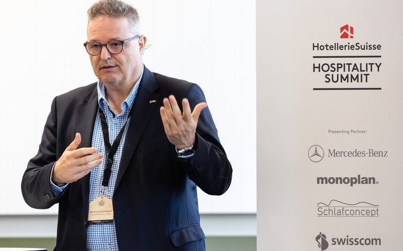 HotellerieSuisse-Direktor Claude Meier moderiert die Podiumsdiskussion zu Future Hospitality: Fachkräfte in der Branche halten. HotellerieSuisse-Direktor Claude Meier moderiert die Podiumsdiskussion zu Future Hospitality: Fachkräfte in der Branche halten. Bild: Corinne Glanzmann/Nadia Schärli/Philipp Schmidli