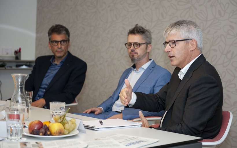 Dass man auch bei der Einrichtung auf Swissness setzen kann, zeigte schon die Auswahl der Gesprächspartner: Mit Stephan Hirt, Vorsitzender der Geschäftsleitung der Schwob AG, Roland Walker, Geschäftsleiter und Mitinhaber der Beck Konzept AG, und Marcel Flury, Leiter Key Account Management bei der Wilhelm Schmidlin AG, waren drei Firmen präsent, welche Hotelausstattung für Schweizer Hotels auch in der Schweiz produzieren. Swissness sei bei der Einrichtung ein neuer Trend, betonte Stephan Hirt: «Der Gast will wieder wissen, was er isst, was auf den Teller kommt, aber eben auch, woher die Textilien im Hotel kommen oder auch, wer dieses Zimmer mitgestaltet hat.» Viele Gäste bestellten die Bett- und Frotteewäsche aufgrund der guten Erfahrung dann über das Hotel auch für zu Hause. «Dies ist für mich ein klares Zeichen, dass der Gast die Schweizer Qualität definitiv wahrnimmt.»[IMG 2]
