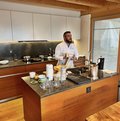 Benjamin Breton, qui fut étoilé au Fiske Bar à Genève, va col­laborer avec Chef at home. Il lui arrive déjà de cuisiner chez des privés: «Cela permet de briser la glace, de découvrir l’univers privé d’un banquier ou d’un notaire par exemple, mais je veux toujours garder ma trame pour pouvoir travailler mes techniques et mes associations de goûts, sinon je n’y vais pas.» Le chef, qui recherche en ce moment à reprendre un établissement en France voisine, se retrouve souvent dans des cuisines bien équipées: «J'emmène toujours quelques outils mobiles habituels, dans mon travail, comme un thermoplongeur pour réaliser quelques cuissons sous vide.»