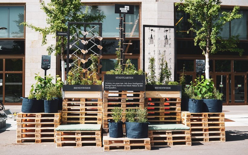 Erst vor wenigen Tagen eingerichtet, findet die kleine, feine Urban Farming-Oase bei der Zürcher Bevölkerung bereits grossen Anklang, wie die Organisatoren erfreut beobachten können. Besucherinnen und Besucher schlendern durch den «Food Zurich»-Stadtgarten, nehmen Platz auf den Sitzgelegenheiten und geniessen den Duft und die Blütenpracht der Kräuter, Pflanzen und Obstbäumchen.