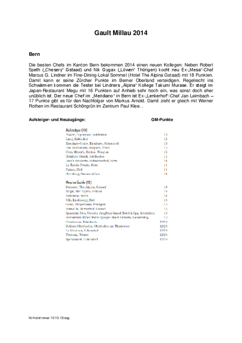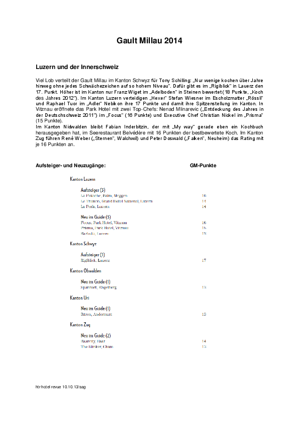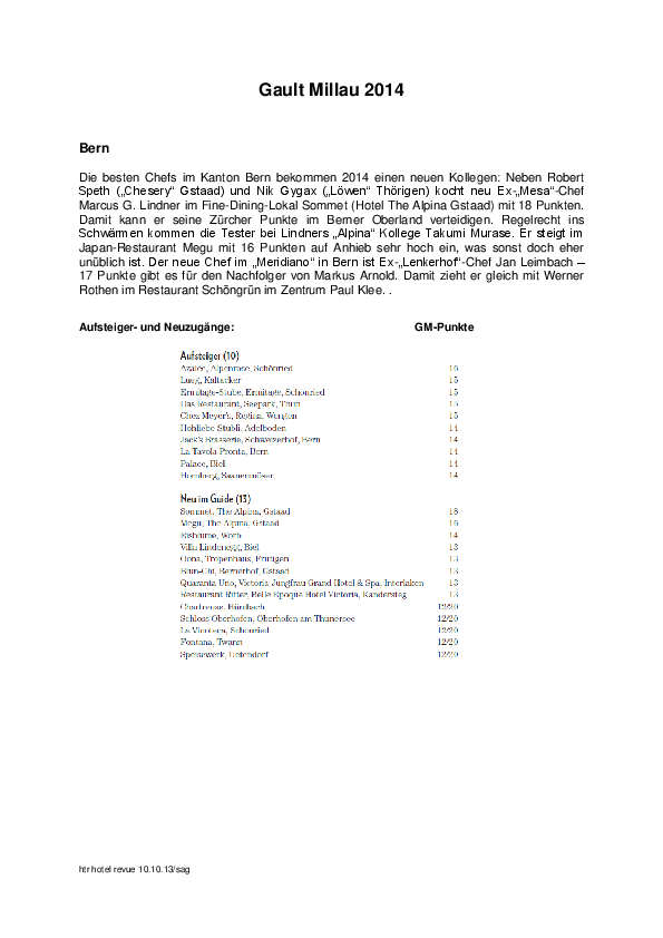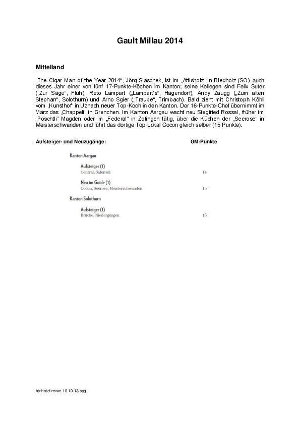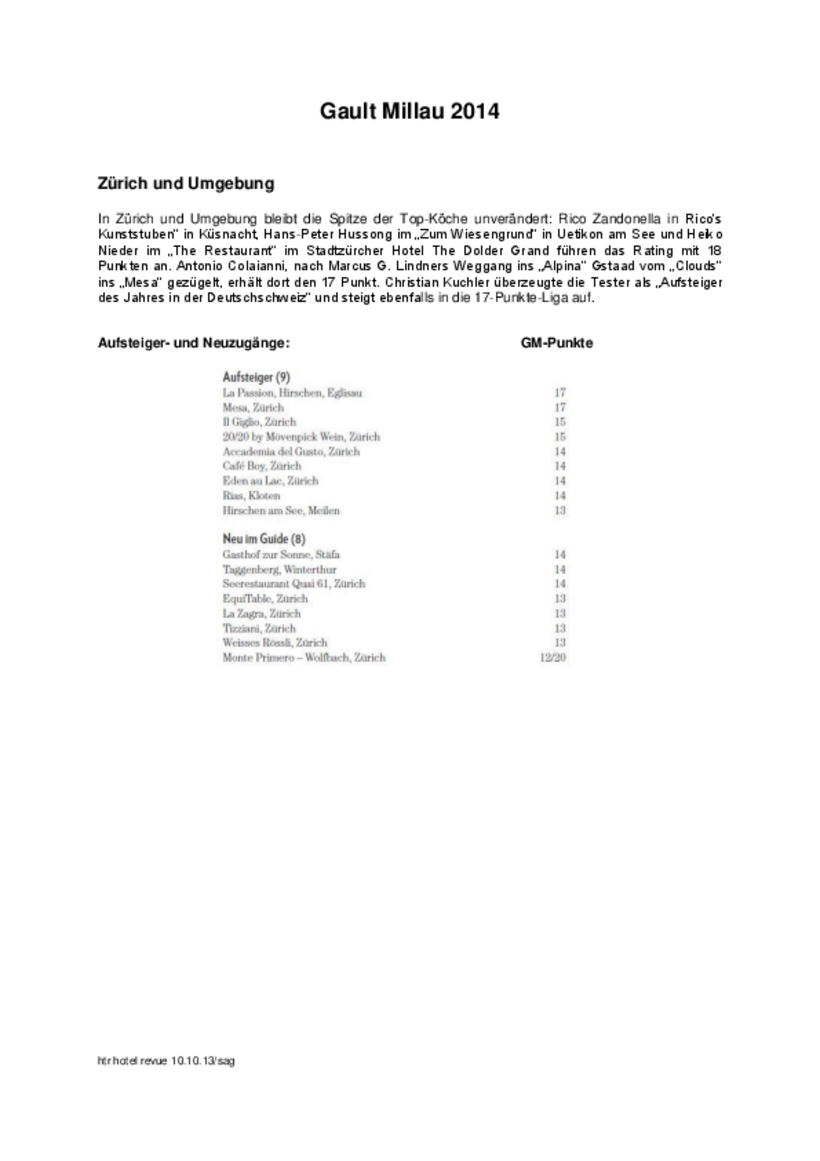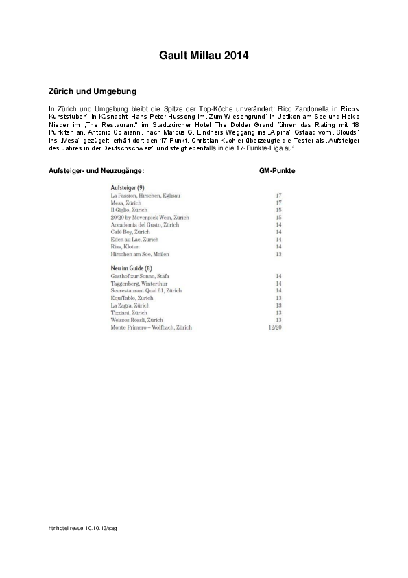 Lesen Sie mehr zur Auszeichnung «Gault Millau 2014» in der htr hotel revue vom 10. Oktober 2013.