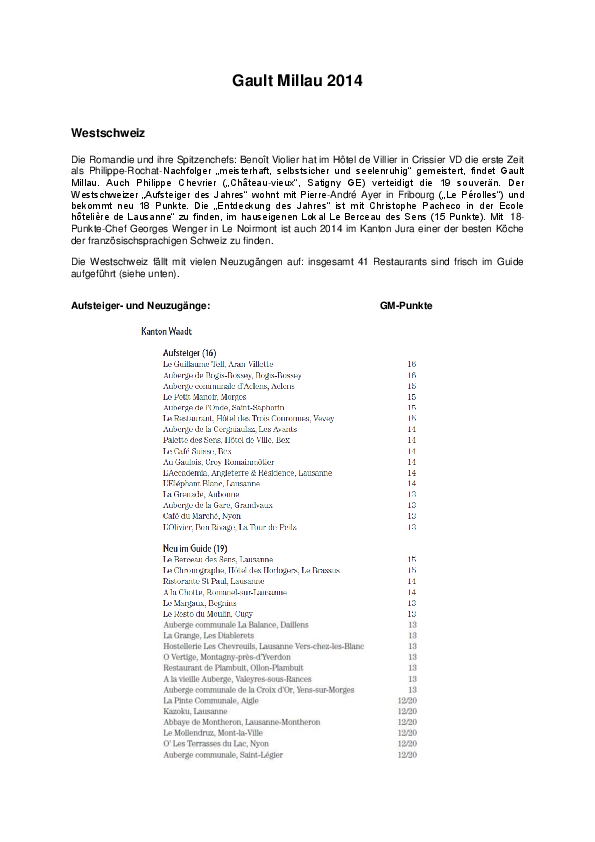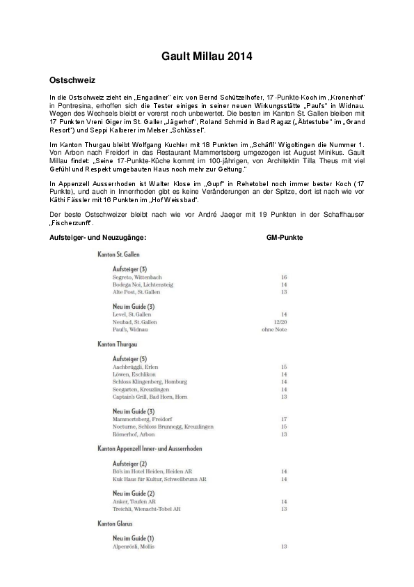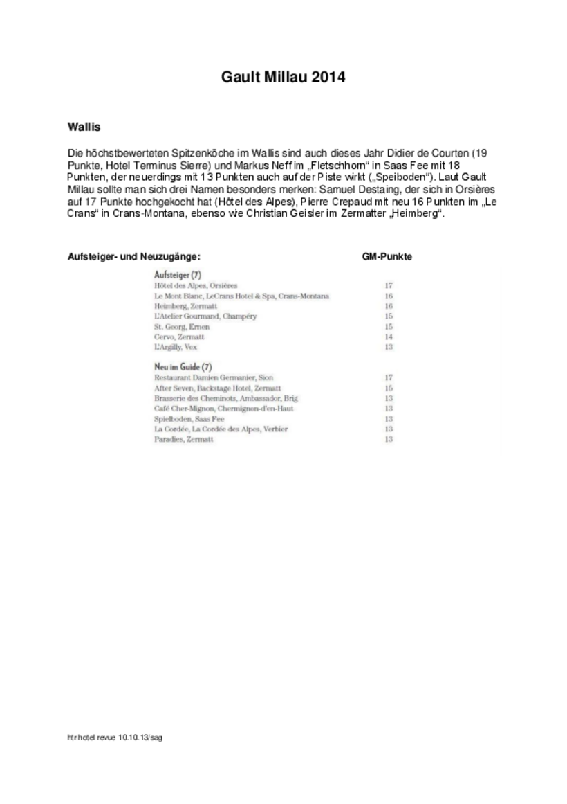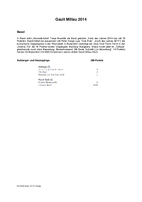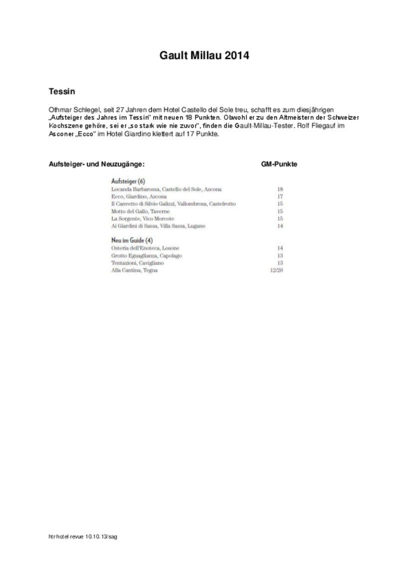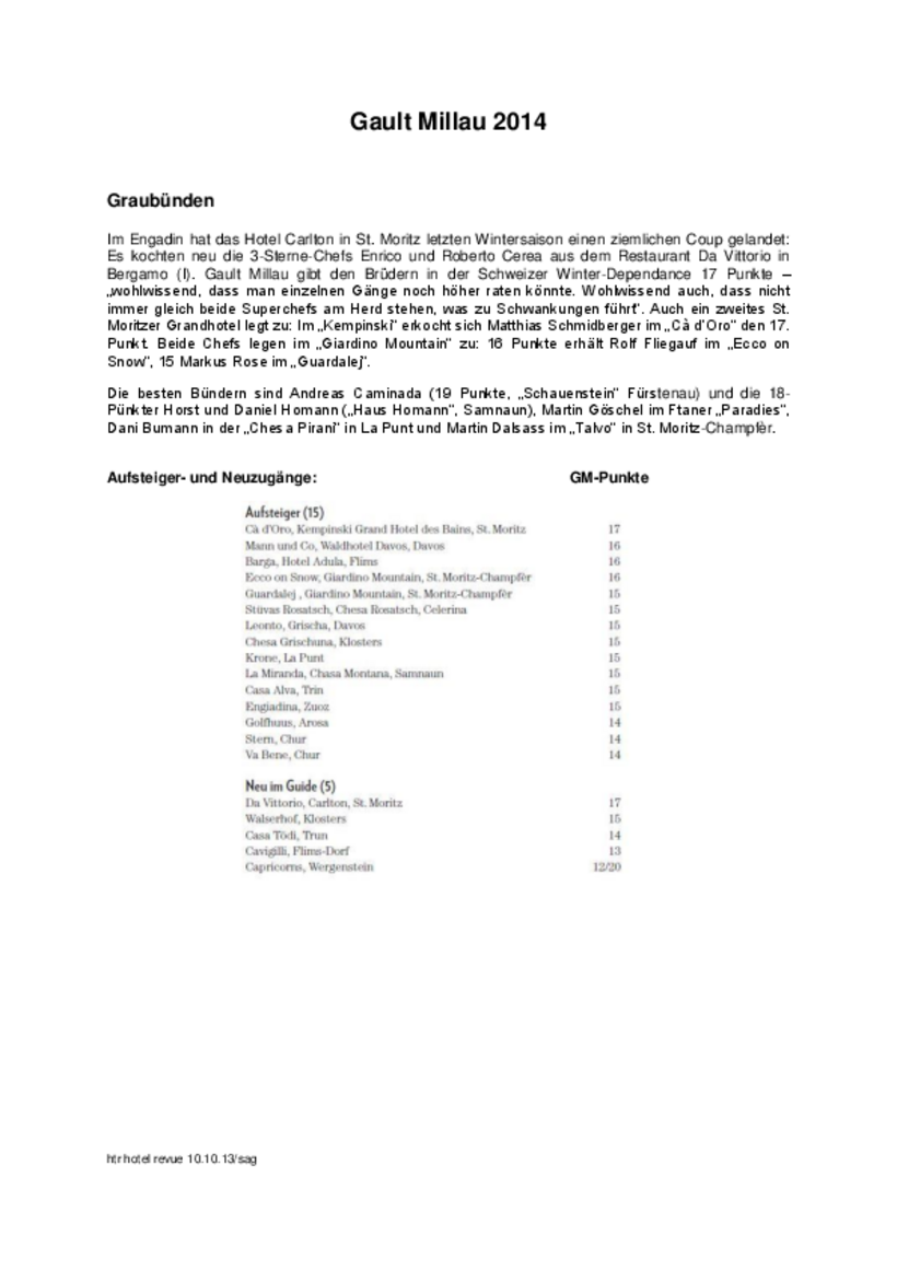 Lesen Sie mehr zur Auszeichnung «Gault Millau 2014» in der htr hotel revue vom 10. Oktober 2013.