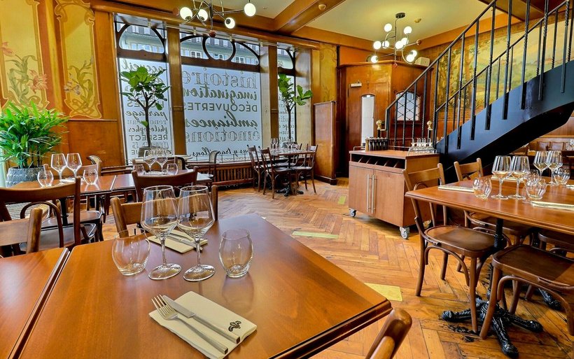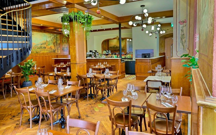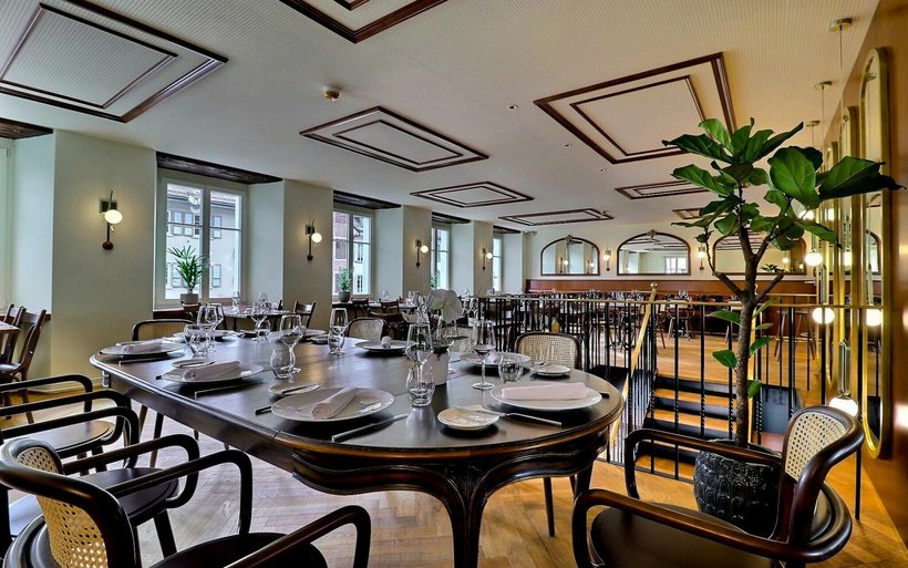Soutenus par le bureau O Charrière Architectes et la décoratrice Thérèse Chollet, les porteurs du projet ont tenu à rester le plus authentique possible. Un élément majeur a toutefois été rajouté: l’escalier central en bois massif, fer forgé et balustrade en laiton. Il relie désormais la salle du café au restaurant à l’étage. «Cela nous permet de doubler le nombre de couverts et de passer à environ 120 places assises. Il était important pour nous de valoriser l'étage, jusqu'alors insuffisamment exploité», note Carlos Tenera, copropriétaire et chef de cuisine. A l’étage, tout a été refait à neuf, autant le bar que le mobilier, qui reste fidèle à l’esprit brasserie. La cuisine est mise en lumière grâce à une vitre donnant sur la salle à manger, et plus particulièrement sur la «table du chef». Ce dernier adapte sa carte toutes les six semaines afin de privilégier la saisonnalité des produits. En cette période de chasse, Carlos Tenera se réjouit de proposer un plat peu courant: le lièvre à la royale.
